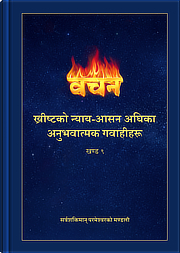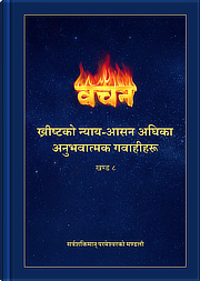 आफ्नो कार्य गर्नको लागि देखा पर्नुभएका सर्वशक्तिमान् परमेश्वर, आखिरी दिनहरूका ख्रीष्टले सम्पूर्ण सत्यताहरूलाई व्यक्त गर्नुहुन्छ, जसले मानवजातिलाई शुद्ध पार्छ र मुक्ति दिन्छ, अनि ती सबैलाई वचन देहमा देखा पर्नुहुन्छ मा समावेश गरिएका छन्। बाइबलमा लेखिएको यो वचन पूरा भएको छ: “प्रारम्भमा वचन हुनुहुन्थ्यो, र वचन परमेश्वरसँग हुनुहुन्थ्यो, र वचन नै परमेश्वर हुनुहुन्थ्यो” (यूहन्ना १:१)। वचन देहमा देखा पर्नुहुन्छ को सन्दर्भमा संसारको सृष्टिपछि, परमेश्वरले सारा मानवजातिलाई सम्बोधन गर्नुभएको यो नै पहिलो पटक हो। यी वाणीहरूले मानवजातिका बीचमा परमेश्वरले व्यक्त गर्नुभएको पहिलो वचनलाई निर्माण गर्छ, जसमा उहाँले मानिसहरूको खुलासा गर्नुहुन्छ, तिनीहरूलाई अगुवाइ गर्नुहुन्छ, तिनीहरूलाई न्याय गर्नुहुन्छ, र तिनीहरूसँग हृदयबाट हृदयमा बोल्नुहुन्छ र ती नै पहिला वाणीहरू हुन्, जसमा परमेश्वरले मानिसहरूलाई उहाँका पाइलाहरू, उहाँ लेट्नुहुने स्थान, परमेश्वरको स्वभाव, परमेश्वरसँग जे छ र उहाँ जे हुनुहुन्छ, परमेश्वरका विचारहरू, र मानवजातिका निम्ति उहाँको सरोकारका बारेमा जान्न दिनुहुन्छ। के भन्न सकिन्छ भने सृष्टि भएपछि तेस्रो स्वर्गबाट परमेश्वरले मानवजातिसँग बोल्नुभएका प्रथम वाणीहरू यी नै हुन्, र देखा पर्न र वचनहरूद्वारा मानवजातिलाई आफ्नो हृदयको आवाज व्यक्त गर्नको लागि आफ्नो अन्तर्निहित पहिचान पहिलो पटक प्रयोग गर्नुभएको यही नै हो। आखिरी दिनहरूका ख्रीष्ट, सर्वशक्तिमान् परमेश्वरद्वारा व्यक्त गरिएको, वचन देहमा देखा पर्नुहुन्छ (छोटकरीमा वचन) मा हाल सात वटा खण्डहरू छन्: खण्ड १, परमेश्वरको देखापराइ र काम; खण्ड २, परमेश्वरलाई चिन्ने विषयमा; खण्ड ३, आखिरी दिनहरूका ख्रीष्टका वार्तालापहरू; खण्ड ४, ख्रीष्टविरोधीहरूको खुलासा; खण्ड ५, अगुवा र सेवकहरूका जिम्मेवारीहरू; खण्ड ६, सत्यताको पछ्याइमा; र खण्ड ७, सत्यताको पछ्याइमा। -