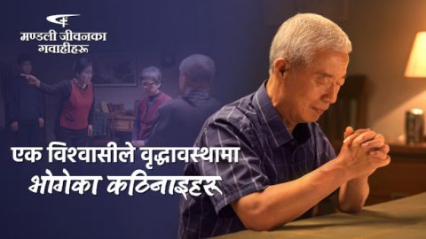 त्यसपछि मेरो छोरा र बुहारी निकै महिनासम्म मलाई भेट्न आएनन्, र मैले पनि कल गरिनँ। मेरी श्रीमतीले मलाई परमेश्वरमा विश्वास गर्न छोड्नुहोस् भन्दै मसँग सधैँ तर्क गरिरहेकी हुन्थिन्। केही समयपछि, मलाई चिन्ता लाग्न थाल्यो। के मेरो छोराले मलाई साँच्चै त्यागेको हो? यदि मेरी श्रीमती र मैले कुनै दिन डिभोर्स गर्यौँ भने र यदि म हिँड्न सकिनँ वा आफ्नो ख्याल गर्न सकिनँ, अनि मेरो छोराले मलाई हेरचाह गरेन भने, मैले के गर्ने? भविष्यमा धेरै पीडा र कठिनाइको सामना गर्ने बारेमा विचार गर्दा, मलाई विवश महसुस भयो। मैले त्यस्तो सोच्नु हुँदैन र म फेरि पनि शैतानको छलमा परिरहेको छु भन्ने मलाई थाहा भयो, त्यसकारण मैले तुरुन्तै परमेश्वरलाई पुकारेँ र आफ्नो गवाहीमा दह्रिलो गरी खडा हुन सामर्थ्य दिनुहोस् भनेर अनुरोध गरेँ। त्यसपछि, मलाई परमेश्वरका वचनहरूको एउटा भजन याद आयो।